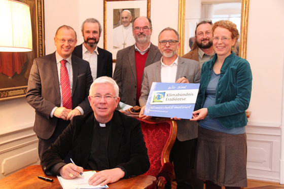 „Die Katholische Kirche unterstützt die gemeinsamen Anstrengungen zur Eindämmung der menschengemachten Klimaveränderungen. Daran besteht kein Zweifel – seit ‚Laudato Si‘ weniger denn je“, betonte Erzbischof Franz Lackner mit Blick auf die Umweltenzyklika von Papst Franziskus. Mit der Unterzeichnung zur Mitgliedschaft im Klimabündnis stelle sich die Erzdiözese in die Reihe der vielen Menschen und Organisationen, die Verantwortung übernehmen für die kommenden Generationen, so der Oberhirte weiter. „Es ist noch viel zu tun. Auch die Idee des Klimabündnisses, dass wir ein weltweites Bündnis mit denen eingehen, die mit weitaus weniger Ressourcenverbrauch leben, aber oft umso mehr vom Klimawandel betroffen sind, ist uns als weltweite Kirche ein großes Anliegen.“